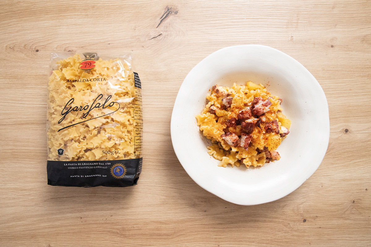 Pasta con pulpo a la gallega: receta fácil con Mafalda corta Garofalo